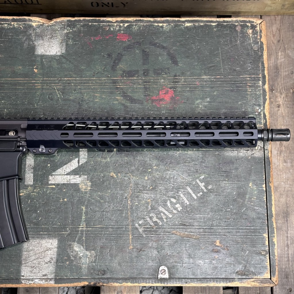 The BATTLEARMS® WORKHORSE® series of firearms are built for duty and hard use in mind.  It is purpose-built around the forged WORKHORSE® 7075-T6 aircraft-grade aluminum receiver and free-float rail handguard with M-LOK attachment point at 3, 6, and 9 o’clock positions.  At 12 o’clock is a full-length Picatinny accessory rail with our signature notch cut matching the upper receiver.  Every firearm is equipped with a 4150 chrome-moly steel black nitride barrel for durability and accuracy.  Each barrel is individually head-spaced with a matching 9310 steel bolt and 8620 black nitride carrier for ultimate reliability and ease of cleaning. It is loaded with numerous enhanced components such as a smooth nickel Teflon trigger, enhanced magazine release, enhanced takedown/pivot pins for easy tool-less breakdown, one-piece magazine catch, billet trigger guard, enhanced bolt catch, user-adjustable three-position pistol grip, and enhanced single side safety.