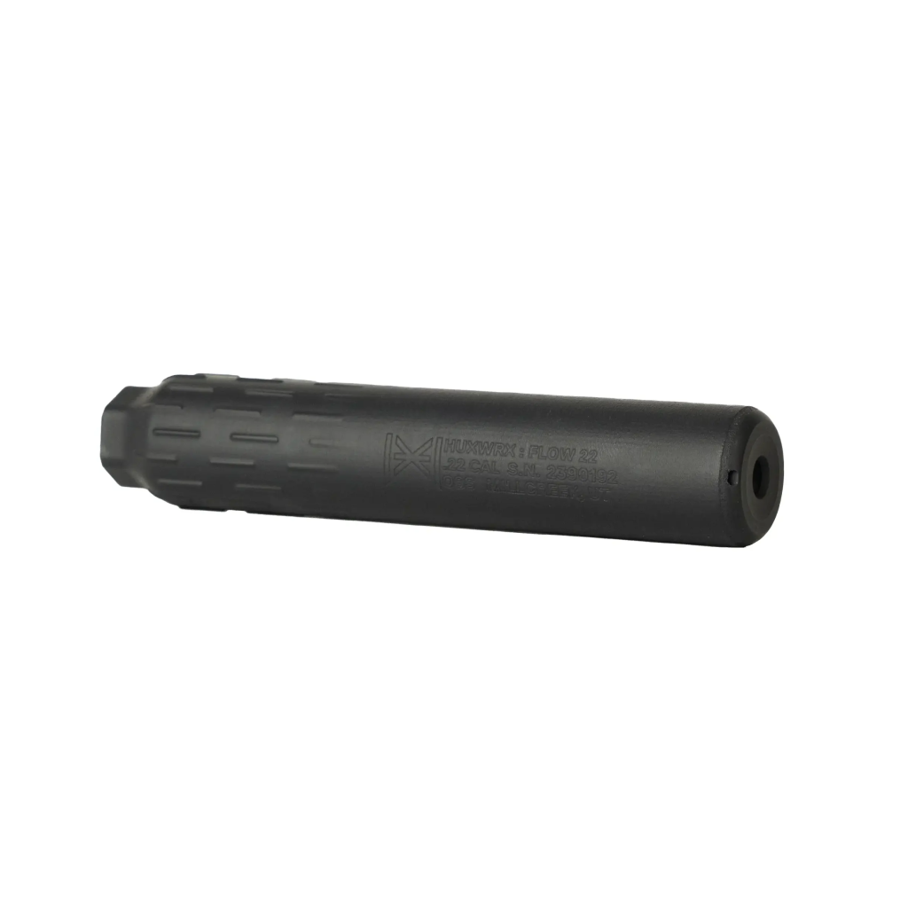 A new dimension of rimfire suppression – The FLOW 22 Ti is the lightest and quietest Flow-Through® suppressor to come from HUXWRX Safety Co. Completely 3D-printed in Grade 5 Titanium, the FLOW 22 Ti is lightweight, versatile, and extremely durable. Built with the latest advancements on our patented and proven Flow-Through® technology, it effectively delivers toxic fume mitigation, improved sound performance, and increased accuracy with excellent repeatability. This suppressor comes direct thread ready in 1/2x28, offers a cleaner shooting experience, and requires no general modifications to the weapon system. The FLOW 22 Ti is full-auto rated and cross platform compatible for 17 HMR, 22 LR, 22 Magnum, and 5.7 with no barrel length restrictions. This suppressor is ideal for competition shooters, hunting enthusiasts, and individuals seeking a top-tier rimfire build.