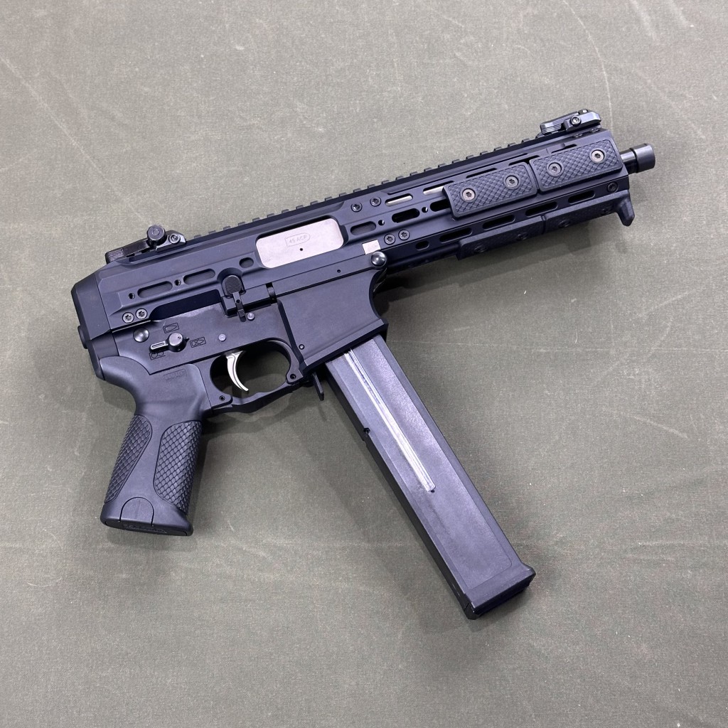 Constructed using high performance aluminum and steel materials with premium hard coat anodized nitride nickel boron surface treatments throughout, the SMG .45 is built to last. Ships with 2 25 round US- manufactured UMP magazines with Paddle Style mag release for easy load and mag changes.