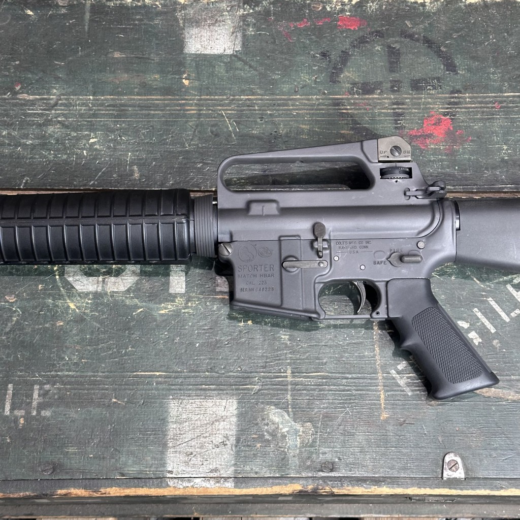 This listing is for a Colt Sporter Match HBAR chambered in .223 Rem. The barrel is 20" with a 1:7 twist rate. Comes with one 20 round Colt magazine. This firearm is used.