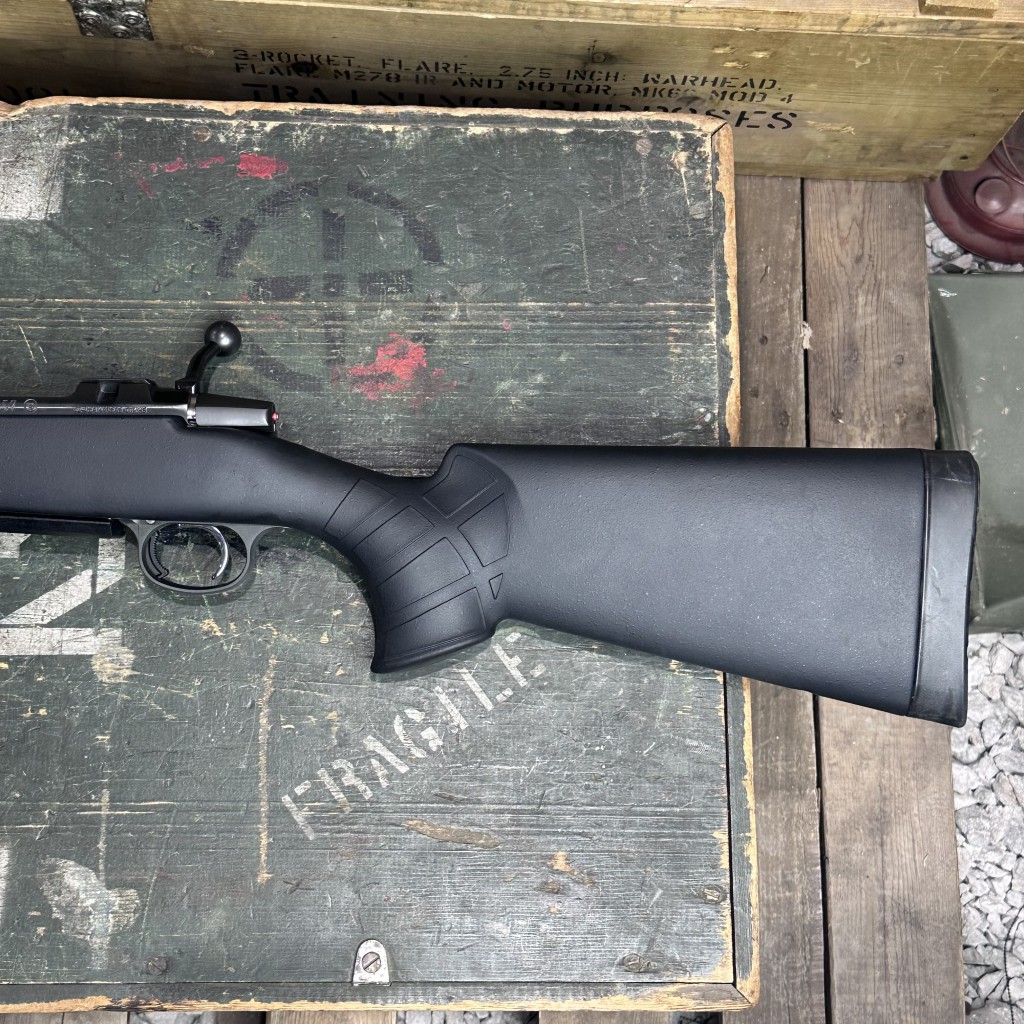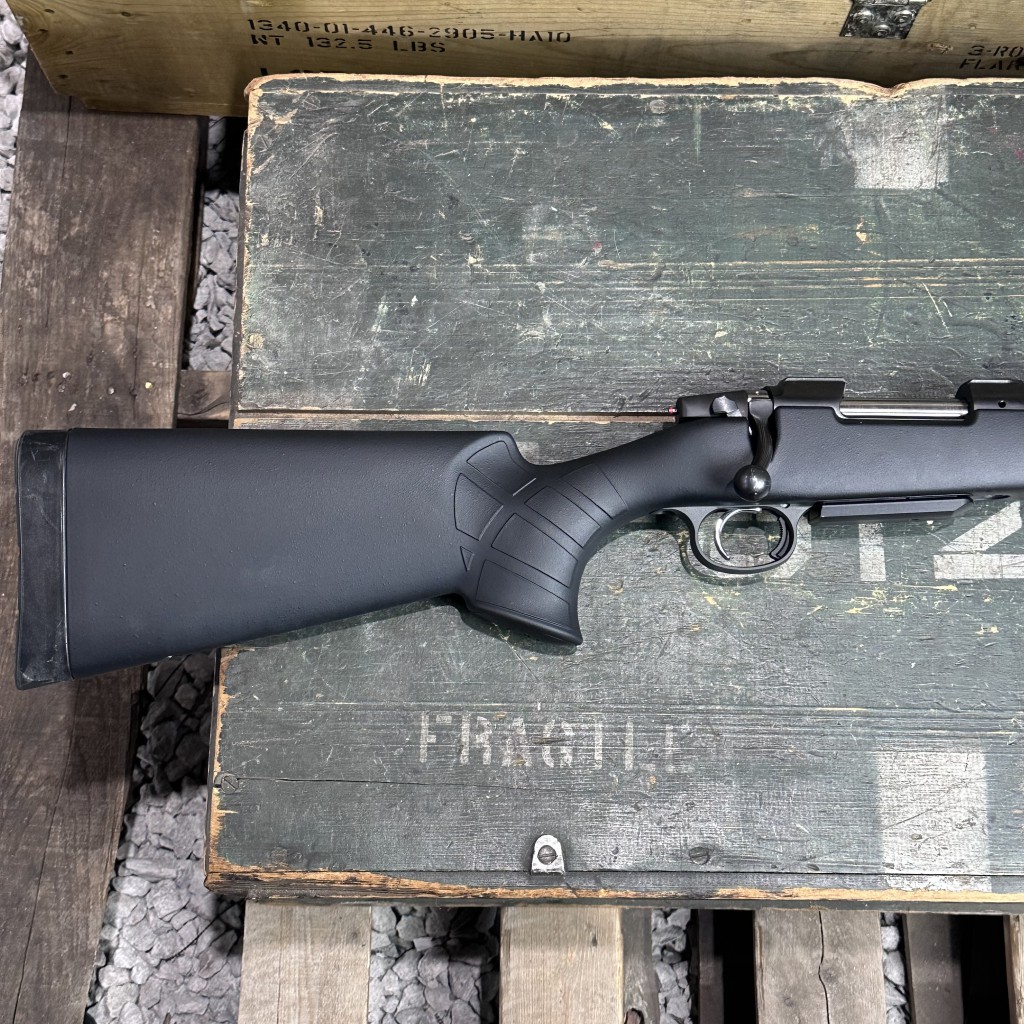 Equipped with a black synthetic stock, this rifle is impressively ergonomic. Its high, flat comb is ideal for being behind a scope, even for long periods of time, while its grip radius and forend are very comfortable on the hands. With a soft-touch finish that grabs onto you, it’s the stock of choice for folks who know they’ll be putting a gun through the ringer. Whether that means busting brush on a deer drive or riding in a scabbard into the wilderness, the 557 American Synthetic is up for the challenge. This firearm is USED.
