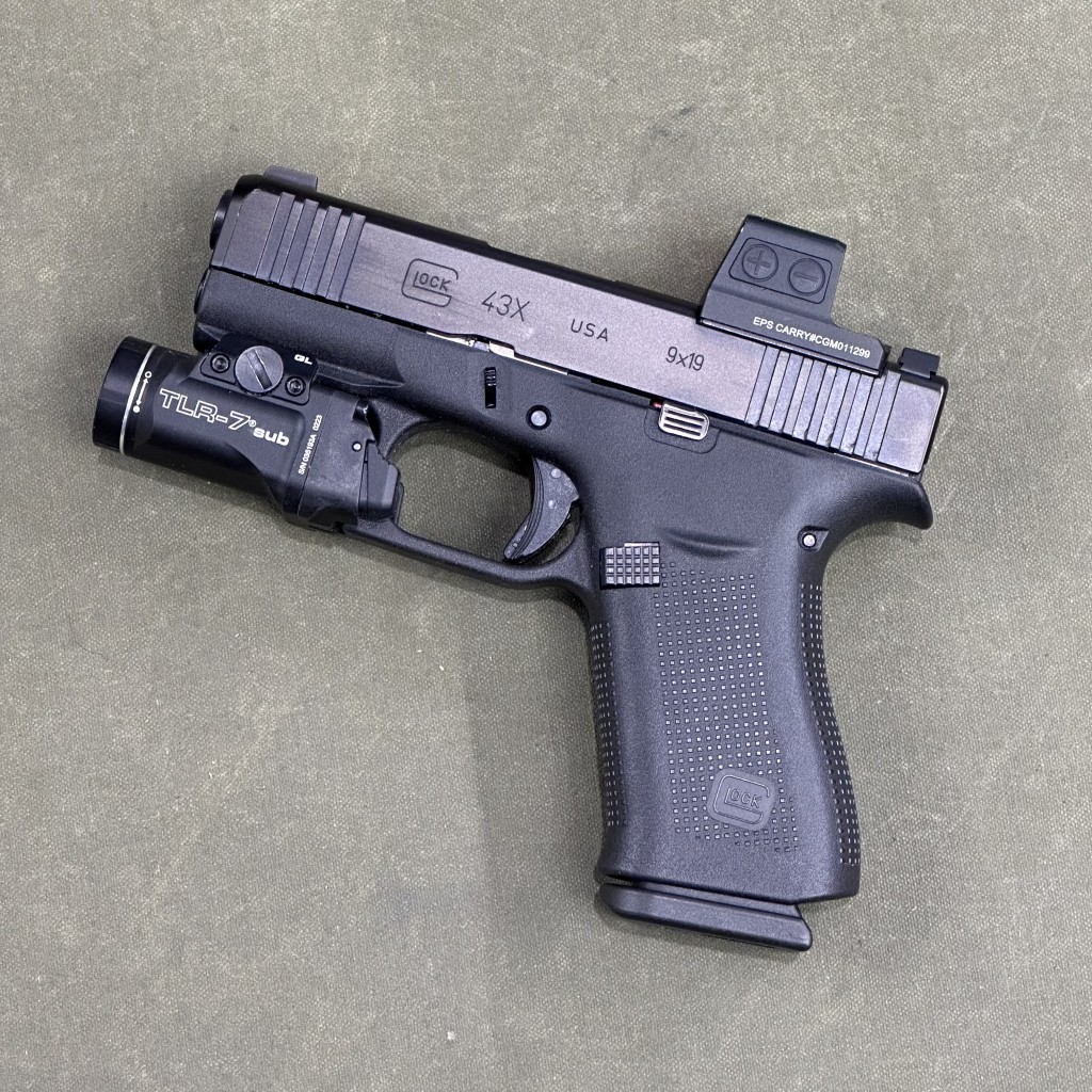 The Glock® G43X MOS Optics-Ready Semi-Auto Pistol utilizes a single-stacked magazine in 9mm to make it slim and compact, specifically for concealed carry use. Coming in with a slide matching the dimensions of the G43, the G43X features a slightly-larger frame that accommodates a larger round capacity and can fit larger hands more comfortably. Made with the same materials and quality control as all Glock semi-automatic pistols, the G43X is a carry gun with the power of a 9mm field gun that you can count on for survival.
