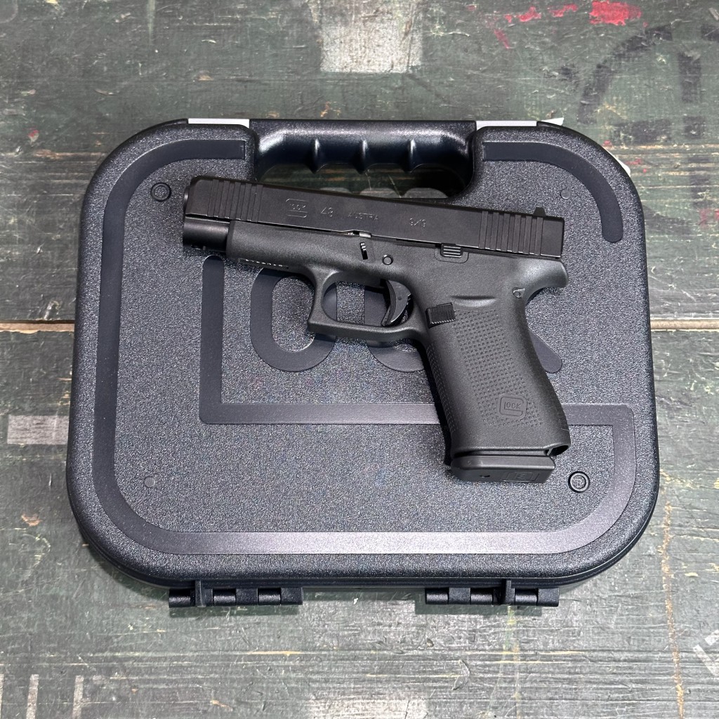 Chambered in 9mm Luger the G48 features a compact Slimline frame and a black slide. The 10-round magazine capacity makes it ideal for concealed carry.