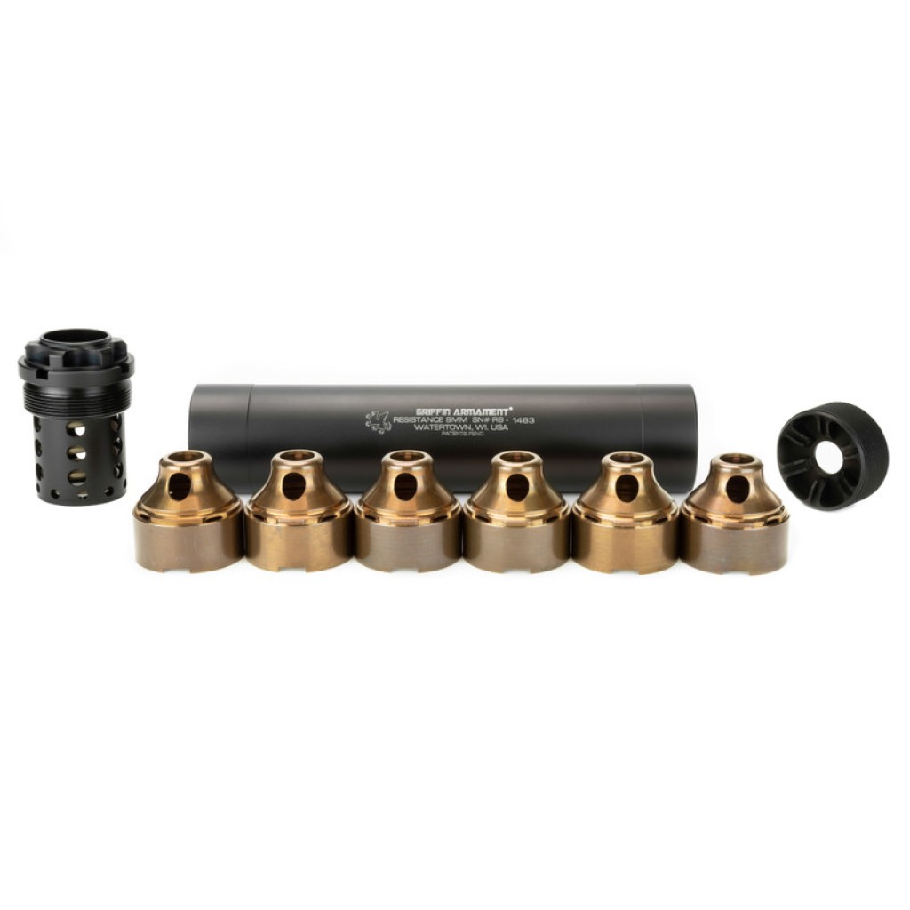 Resistance silencers are user serviceable ensuring long, high performance service life. The front caps can be interchanged on the Resistance 9 for the smaller, .22 caliber front cap. 17-4 stainless heat treated baffles, with anti-rotation features, ensure maximum strength and sound performance. The booster assembly includes a piston for a turnkey suppressor system out of the box. Included take down tools allow for an easy and satisfying end user maintenance experience. Additional pistons, fixed barrel spacers, an integral 3 lug adapter, and fixed direct thread mounts are available to support the Resistance in any configuration the end user could desire. High quality, industry leading performance, strength, high feature functionality, build quality, and price make the Resistance silencers an unbeatable value in the fixed length silencer class.
