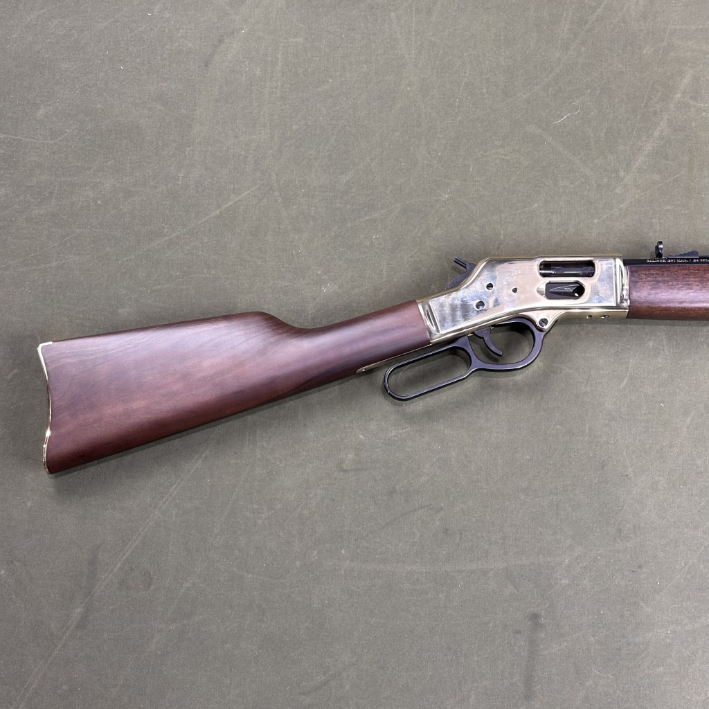True to Henry form, these rifles are constructed with exquisite attention to detail, using fine American-made components. Both the straight-grip stock and forearm are crafted of select American walnut accented with a polished brass barrel band and Henrys signature polished hardened brass receiver. All have the smooth action and crisp trigger that distinguishes an authentic, American-made Henry.For those looking to experience an undisputed piece of Americana, whether its at the range, in the field, or on a cowboy action stage, the Big Boy Brass Side Gate is guaranteed to bring out the West in you.