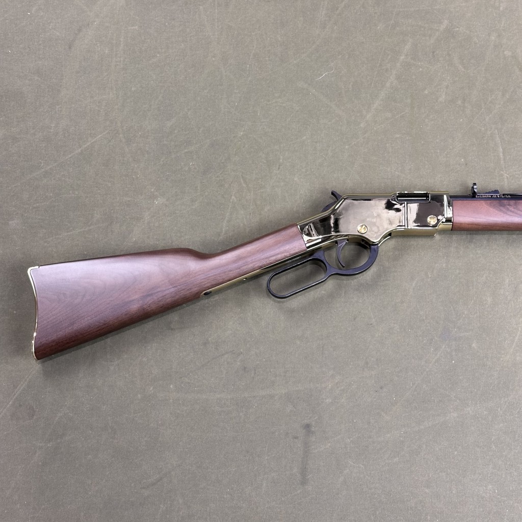The Golden Boy Rifle's awesome 20-inch blued octagonal barrel, American Walnut stock, brass buttplate and gleaming Brasslite receiver will transport you back to the wild and wooley days of America's Old West! Small game hunters and plinkers will appreciate its substantial 6-3/4 pound heft. It balances well and makes for highly accurate offhand shooting. The smooth action associate with Henry rifles opens and shuts with the effortless slickness lever-lovers long for. Adding to the historic authenticity is the adjustable buckhorn-type rear sight. The .22LR version holds 16 rounds. Get one in your hands and take aim!