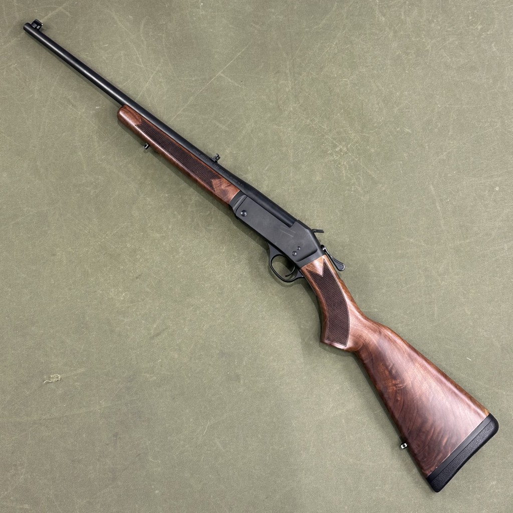 The Single Shot Rifle carries on the Henry tradition of providing high-quality and functional firearms. This rifle is designed with a simple break-open action, making it easy to operate and maintain. The rifle is equipped with a no safety feature, allowing for quick and easy firing. The full-size rifle comes with a blued steel receiver and a gorgeous American walnut stock, ensuring durability while providing a classic look. The rifle's 22in round barrel adds to its balanced feel and accurate shooting performance.