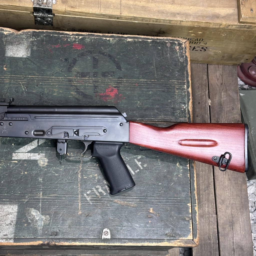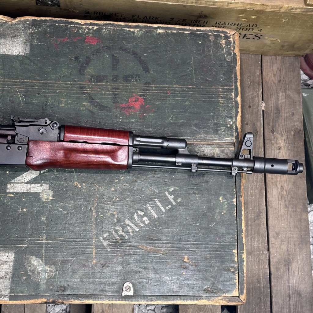 Original Military Style AK-74 Rifle, 5.45 x 39 Caliber, Semi-Auto. These Rifles are built by James River Armory utilizing Grade A Bulgarian parts sets, with New U.S. Made Barrels, New U.S. made Premium Receivers, and enough U.S. additional U.S. parts to make the rifle fully 922r compliant.