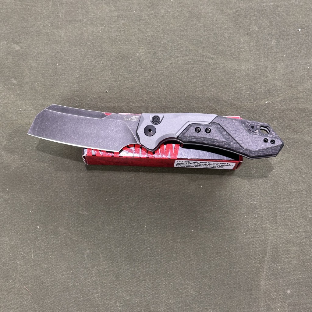 Cleaver blade action comes to Kershaw’s automatic series with the Launch 14. Grip the auto securely with the two-piece aluminum and carbon fiber front handle. While the flashy carbon fiber screams “look at me,” the Launch 14 is far from a safe queen. A finger choil allows users to choke up on the blade during heavy work tasks. The BlackWash™ coating hides use scratches after a hard day’s work. Other details tie it all together, including a bronze anodized titanium tube spacer, reversable pocket clip, and an integrated backspacer with a lanyard hole. But it’s the tantalizing cleaver that begs Kershaw fans to press that button again and again.