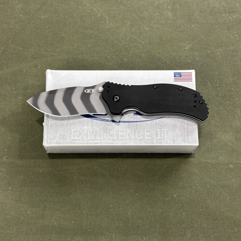 Same durable build. Same precision quality. Yet the Zero Tolerance 0350TS has something the others don't—a bold, tiger-stripe blade. While it may look a little wilder, the 0350TS has all the same features as our classic 0350. Same high-performance S30V blade. Same textured black G10 scales. And ZT's swift and simple opening system so it’s always ready for the next task quickly.