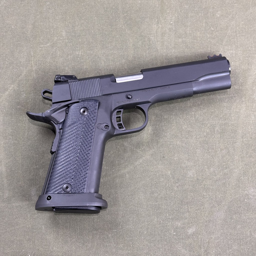 The Rock Ultra full size HC is built in the classic 70 series design and delivered with our precision engineering standards and first rate upgrades. This pistol is chambered in 10mm with a 5” button rifled barrel supported by a full length guide rod. It includes a double stack magwell with a 16-round capacity. Smooth angled, snag-free styling allows for quick draw in fast need situations. This firearm features a low profile adjustable rear sight and high visibility fiber optic front sight and includes a skeletonized hammer and trigger with adjustable over travel stop and ambidextrous safety. The Rock Ultra is finished with a tough, parkerized matte coating and G10 tactical grips. True to all Rock Island 1911s, the Rock Ultra comes with a crisp factory 4- to 6-pound trigger, which gives you a great experience right out of the box.