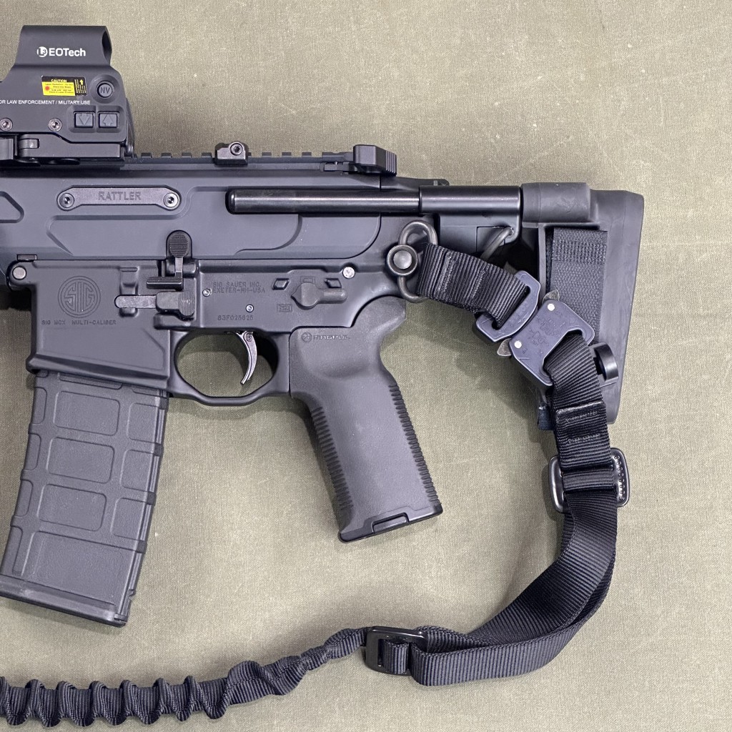 Includes SureFire 340 weapon light, EOTech EPS3 optic, Savvy Sniper sling, telescoping brace, and a Omega 300 demo suppressor. This firearm is USED.