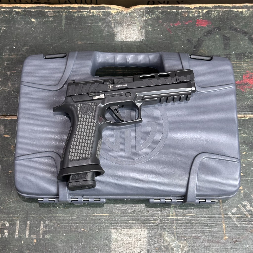 One of the most popular handgun choices on the market today, the Sig Sauer P320 is well-loved for its reliability, modularity, and accuracy. Utilized by the United States Military and Law Enforcement agencies around the world, the P320 is a trusted choice for personal protection. This P320 is part of Sig's Custom Works program.