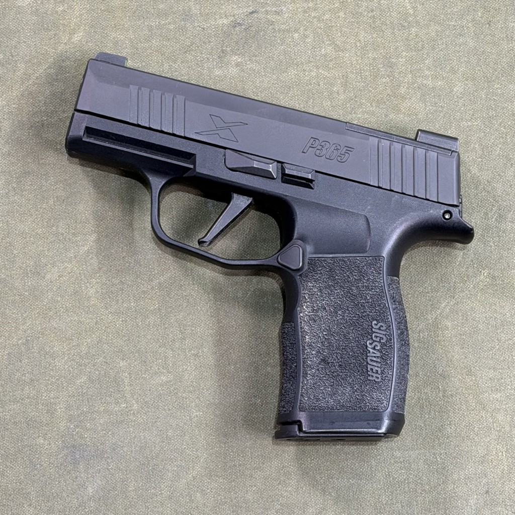 The SIG Sauer P365 is a striker-fired subcompact semi-automatic pistol manufactured by SIG Sauer, intended for everyday carry. It is offered with Tritium XRAY3 Day/Night Sights and two 10-round magazines; one flush fit and the other with an extended finger tab, and a stainless steel frame with an Icarus Precision grip module installed.