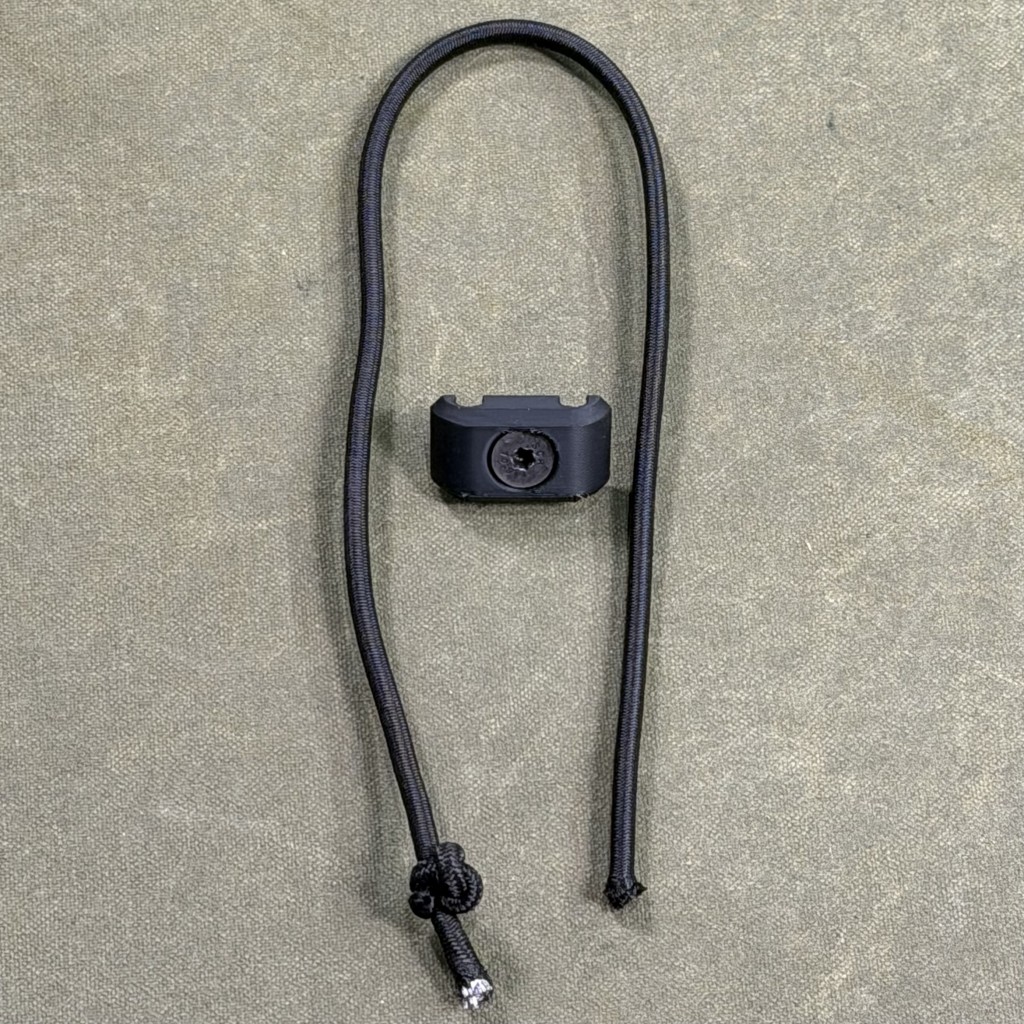 Included with this retainer is the M-Lok mount and 12 inches of high strength bungee cord.