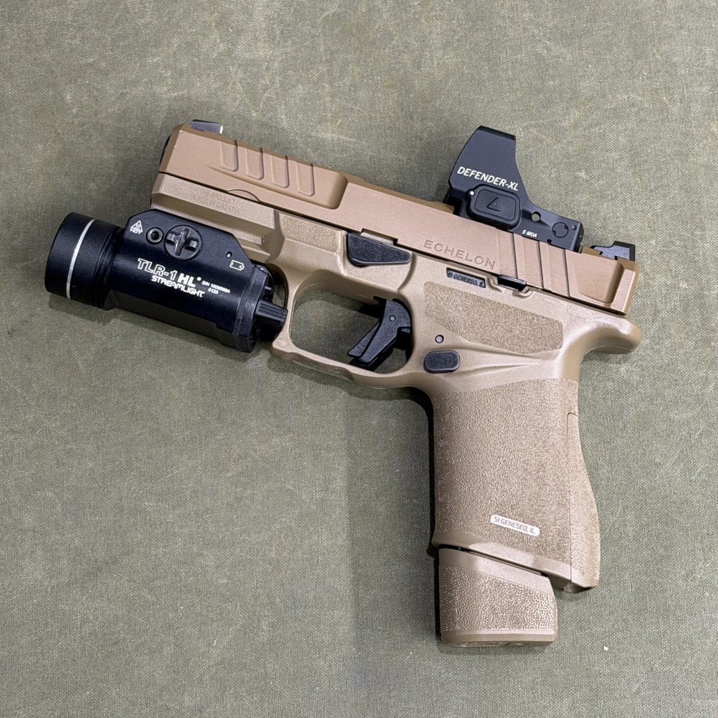 Engineered with superior ergonomics and built to withstand the harshest conditions, the Echelon™ 4.5" 9mm handgun sets a new standard for modern, striker-fired duty pistols. With a host of patent pending features, this modular pistol is designed around a robust stainless steel chassis. In addition, a revolutionary optics mounting system allows for unparalleled adaptability with a broad range of optics. Fully ambidextrous, the Echelon features a U-Dot sight system for fast target acquisition.
