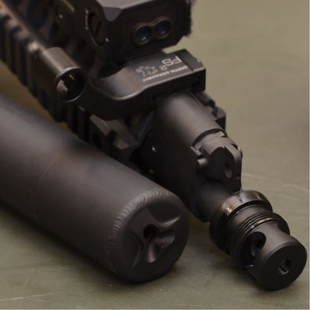 Also new to the Recce 5 (MOD 4) is a tuned, Patented baffle system offering the apogee of multi-caliber sound performance. Elite tactical units requested minimal flash signature and Griffin responded by developing a low-profile flash reducer integral to the suppressor.